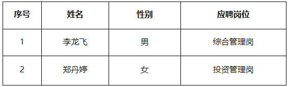 根據(jù)《衢州市交通投資集團(tuán)有限公司“衢子回鄉(xiāng)政企助力”市縣聯(lián)動(dòng)大學(xué)生專場(chǎng)招聘會(huì)工作方案》要求,現(xiàn)將擬錄用人員名單公示如下: