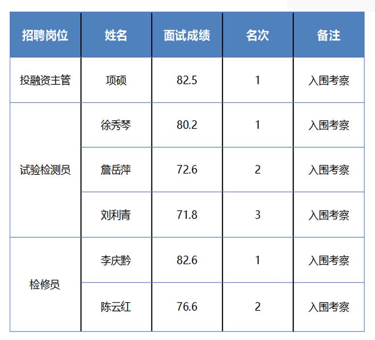 根據(jù)《衢州市交通投資集團有限公司招聘工作人員公告》,現(xiàn)將入圍考察人員的名單公布如下: