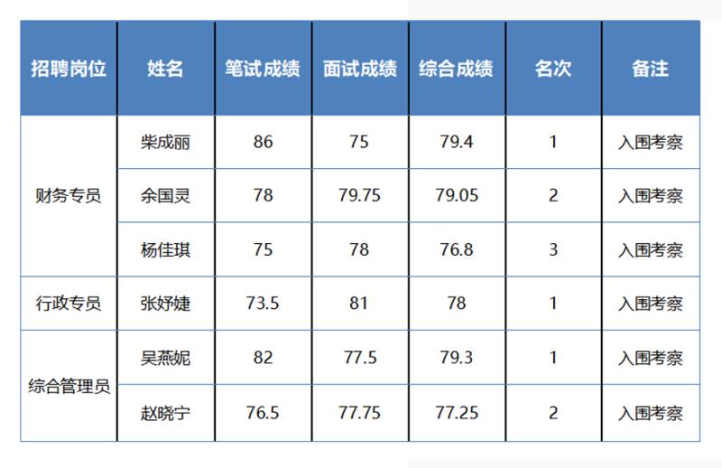 注:網(wǎng)絡(luò)信息技術(shù)員崗位根據(jù)招聘公告第三條第四點“面試成績合格分為60分,面試不合格者,不再列入入圍對象”要求,該崗位無入圍人員。