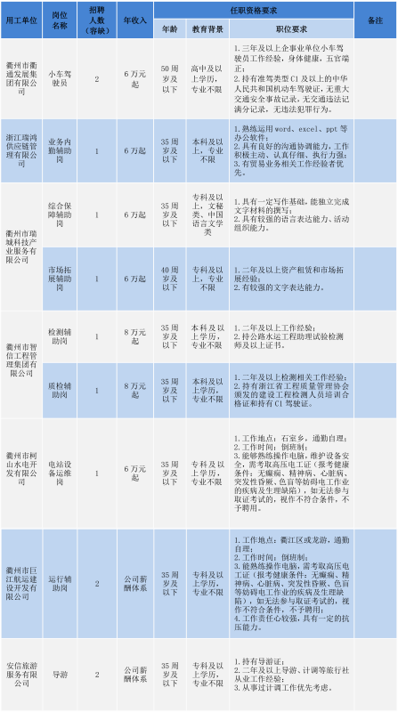 衢州市衢通發(fā)展集團有限公司因工作需要,現(xiàn)面向社會公開招聘12名勞務派遣人員。具體事項公告如下: