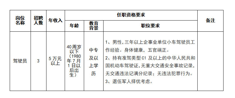 招聘小車駕駛員3名,勞務(wù)派遣用工。